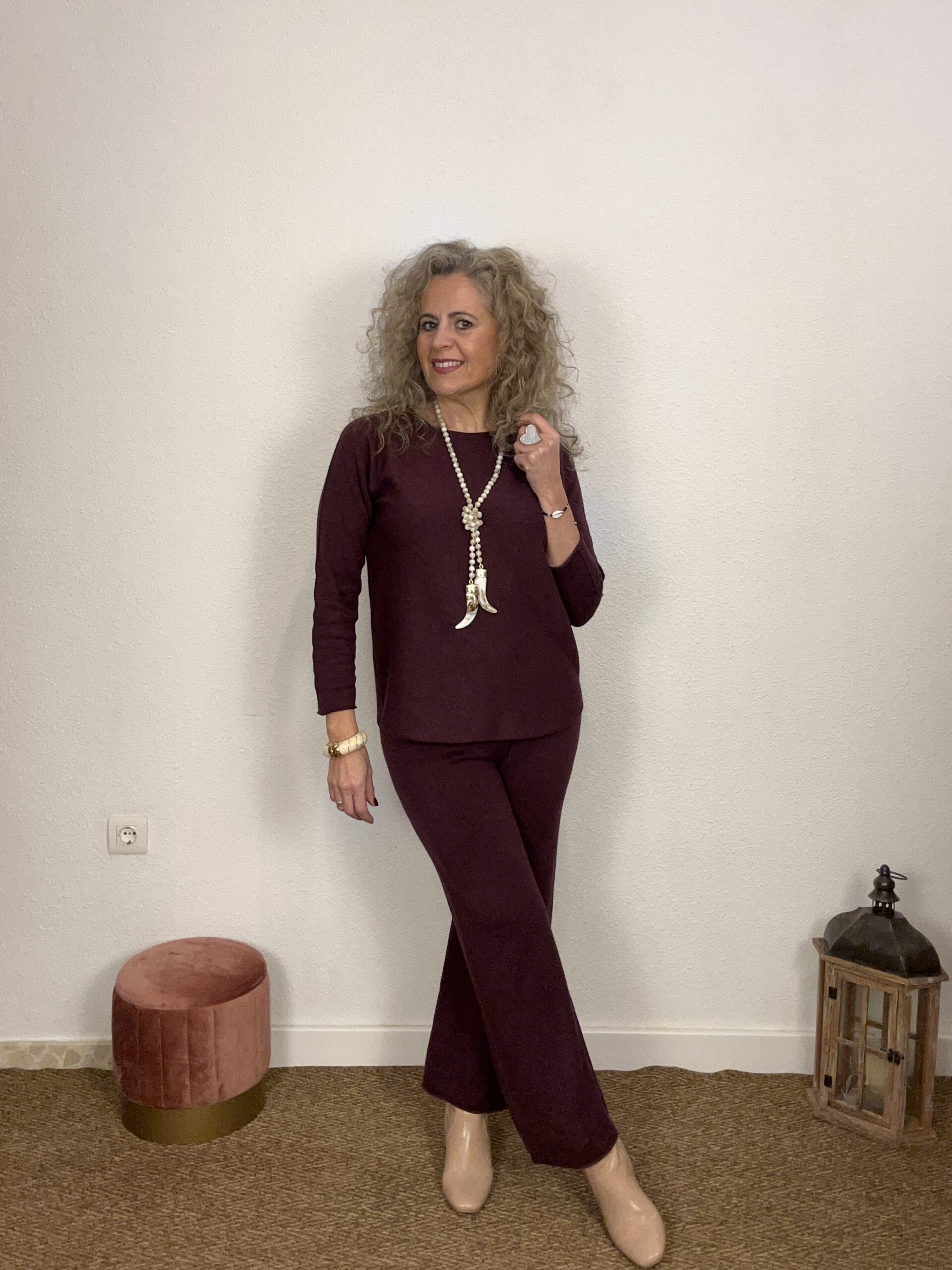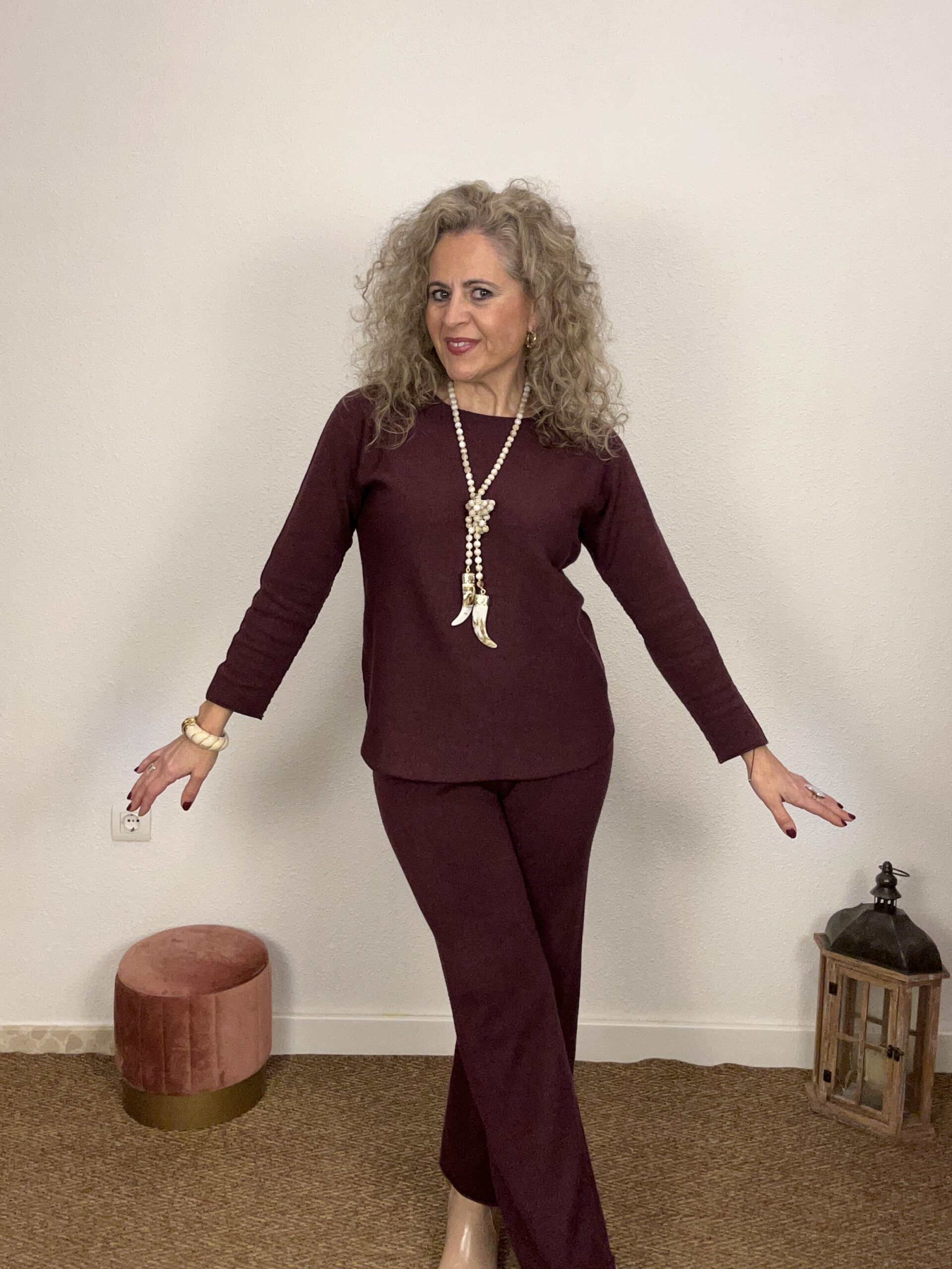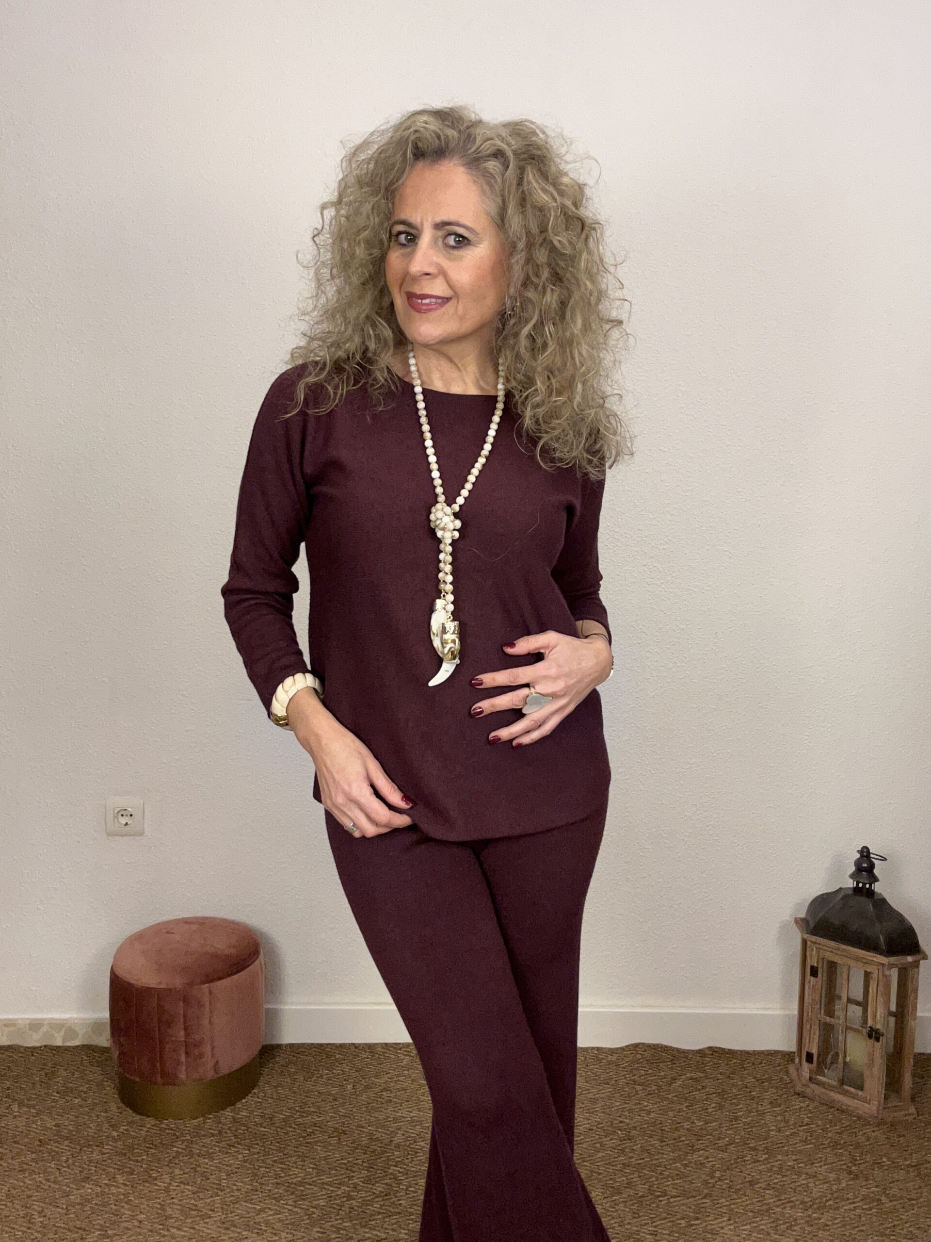 Conjunto Burdeos de punto dos piezas: con tejido suave y esponjoso.
